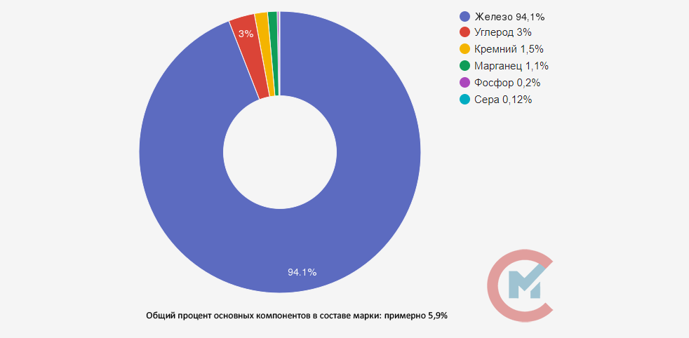 Основной элемент сплава – железо, дополнительные – углерод и кремний, значение которых определяет основные свойства серого чугуна, а также марганец, фосфор и сера. Допускается дополнительное низкое легирование различными элементами – фосфор, никель, хром и др.